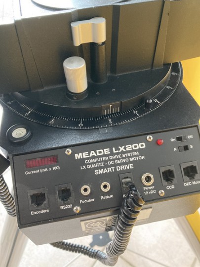Meade LX200 8" F/6.3 (203,3mm - F=1280mm). Perfettamente funzionante. Montatura a forcella. Treppiede da campo. Motorizzato e computerizzato su entrambi gli assi.