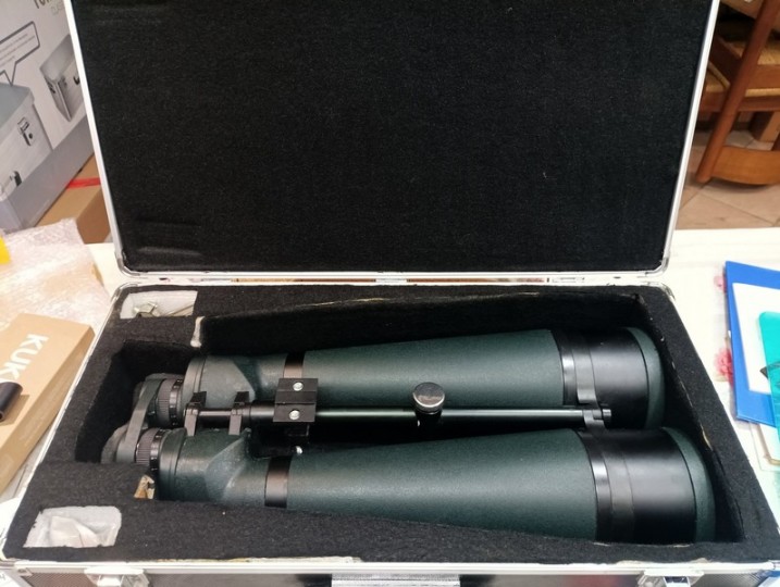 Per inutilizzo metto in vendita questo spettacolare binocolo astronomico TS-Optics MX Marine 28x110, con obiettivi da 110 mm, ingrandimento 28x e corpo riempito d’azoto (anti-appannamento) e peso circa 6,9 Kg.