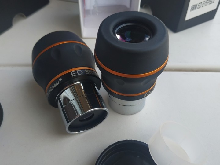 Coppia di oculari 1,25" con due elementi ED, rivestimento FMC, bordi anneriti, campo apparente 60°, 6 elementi in 4 gruppi.