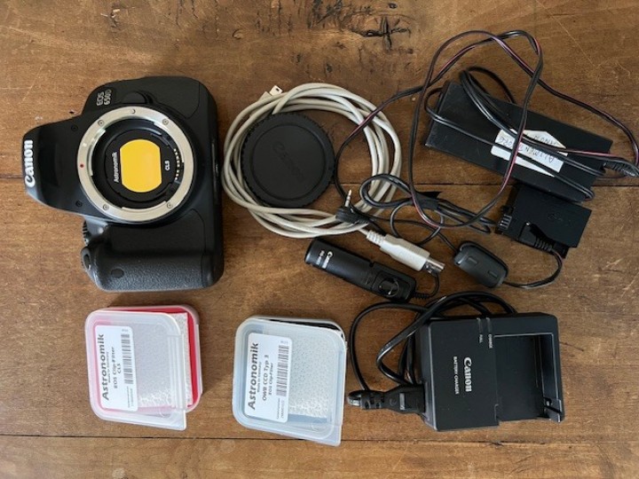 Vendo Canon EOS 650D, modificata per astronomia, senza card, batteria originale, con filtro Astronomik EOS clip-filter CLS, filtro Astronomik OWB (white balance) clip-filter, falsa batteria con alimentazione 12v, cavo usb, cavo scatto.