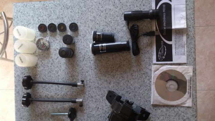 – Oculari Kellner (diametro 31,8 mm): 20 mm (50 ingrandimenti), 9 mm (110 ingrandimenti)