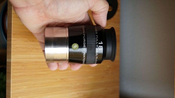 Oculare grandangolare da 18mm, campo apparente 82° e barilotto diametro 2 pollici.