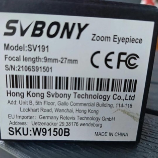 SVBONY oculare zoom 9-27 mm, nuovo, ricevuto in regalo e mai usato.
