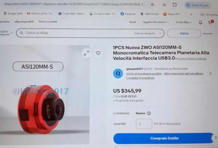 Vendo: Telecamera planetaria ZWO ASI 120MM b/n