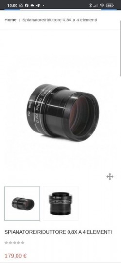 Vendo riduttore per rifrattore Tecnosky 0.8X costruzione a 4 elementi. Copre la quasi totalità delle focali si inserisce direttamente nel porta oculari da 2", lato camera ha invece un classico filetto T2 , M42x0,75mm