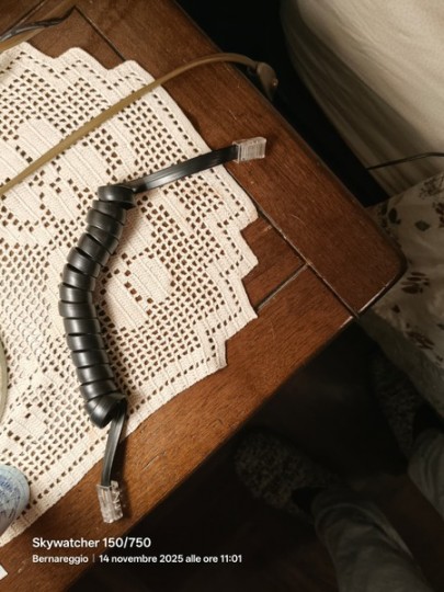 Cerco il cavetto esterno di ricambio per una montatura AVX, in particolare quello che collega il motore di AR con quello di Declinazione. Deve essere perfettamente funzionante.