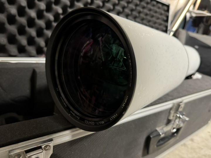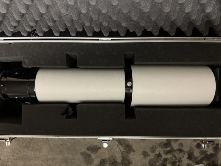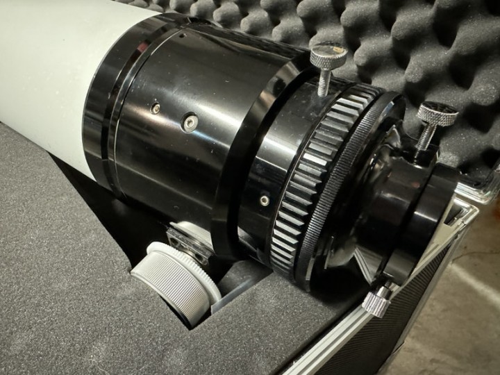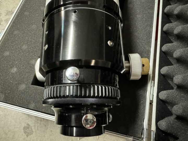 Vendo per passaggio ad altra configurazione telescopio come da oggetto sempre tenuto in cupola coibentata. Tripletto Apo. Focheggiatore da 3".