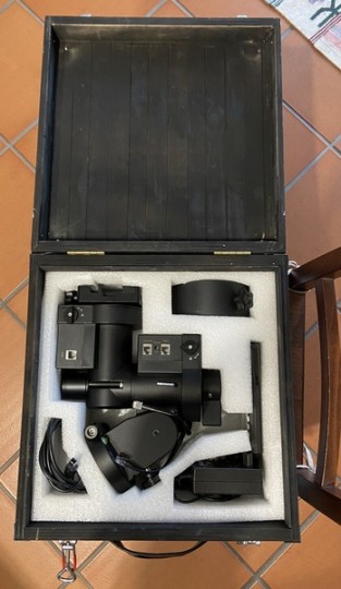 Splendida montatura astronomica CEM26, praticamente inusata, come nuova, in confezione originale, completa di tutto, cavi, alimentatore manuale originale, treppiede. Usata una sola volta per un progetto in un liceo. Per ulteriori 50 euro la spedisco nel bauletto di trasporto.