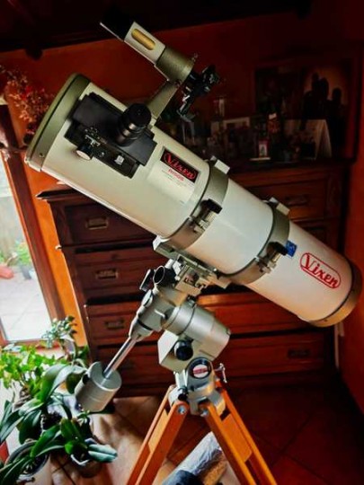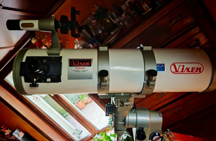 Vendo, per trasferimento e mancanza di spazio, telescopio Vixen R150S completo di montatura come da foto, perfetto, senza neanche un graffio, mai un urto, neanche piccolo, tenuto sempre in casa come elemento di arredo, usato pochissimo, mai trasportato.