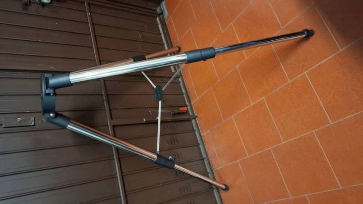 Fattura in acciaio estremamente robusta, pesa 10 kg con altezza massima 130cm e 85 di minima.