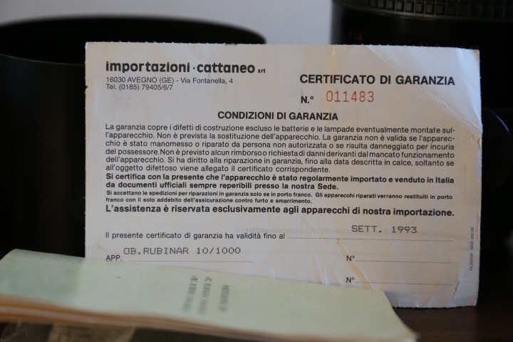 L'obiettivo è stato fabbricato nel 1992 ed è uno dei pochi esemplari regolarmente importato e venduto nel mercato italiano come da documento di garanzia in foto.