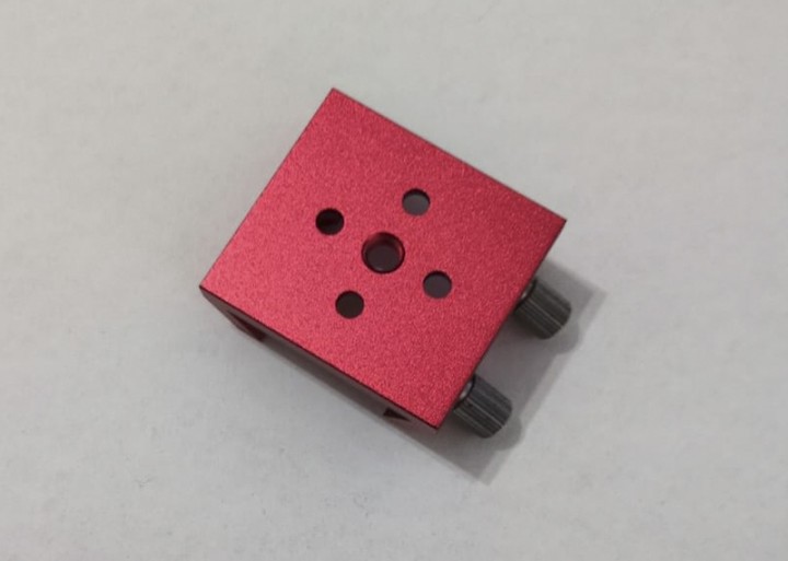 Vendo per inutilizzo, morsetto mini vixen doppia manopola. Foro centrale 1/4 di pollice passo fotografico e i restanti fori sono m4