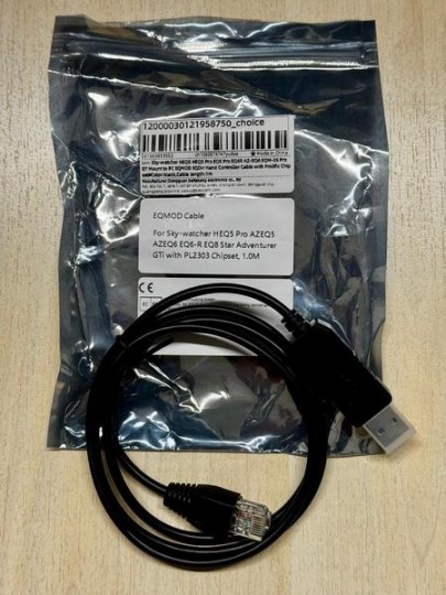 Cavo di collegamento EQMOD con lunghezza di 1 metro per montature Sky-watcher HEQ5, HEQ5 Pro, EQ5 Pro, EQ6R, AZ-EQ6, EQM-35 Pro con chipset Prolific. Permette di collegare le montature Sky watcher a PC o Asiair, in modo da poterle controllare. Prodotto come nuovo