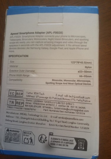 Vendo Adattatore fotografico per Smartphone della Aplex modello (APL-F002X).