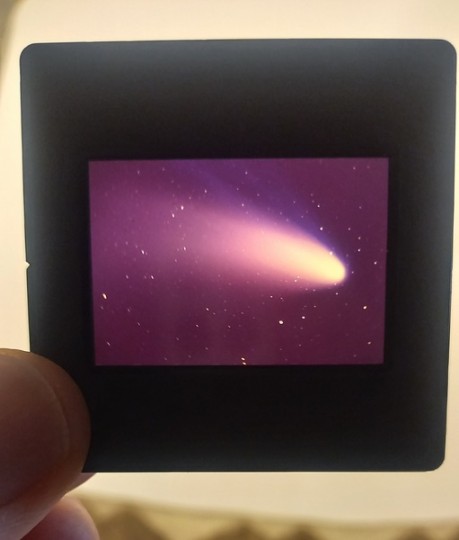 2 diapositive originali ( scattate monti della Tolfa aprile 1997) relative alla grande cometa Hale-Boop. Realizzate con metodi molto, molto artigianali perchè all'epoca non avevo di meglio.....