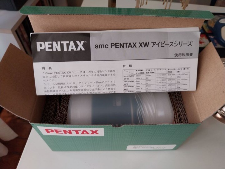 Vendo conto terzi oculare Pentax XW 14 in box. Completo di tappi. Box plastico e box cartonato.