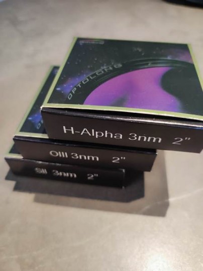 Filtri OPTOLONG da 2" SHO per fotografia in banda stretta. kit di filtri Optolong SHO-3nm filtri a banda stretta SII 3nm, H-Alfa 3nm e OIII 3nm,. condizioni ottime. utilizzavo il filtro in una ruota portafiltri