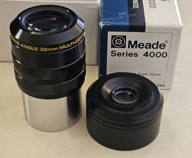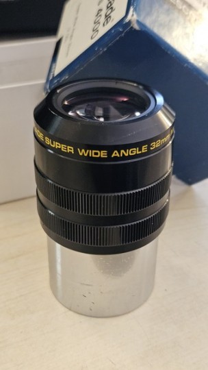 Oculare Meade 32mm SWA made in Japan in ottime condizioni, la versione originale aveva 67° ma ho allargato leggermente il diaframma di campo in modo da arrivare a 72°. Compreso nel prezzo c'è un aggiuntivo ottico da me realizzato che lo trasforma in un 26mm con ben 86° di campo apparentemente, simile quindi ai prestigiosi Televue Nagler. Ottima correzione fino ai bordi del campo. La focale più breve aumenta ovviamente l'ingrandimento e permette di avere un cielo più buio. Diametro da 2 pollici, 50,8mm. Sul barilotto cromato si percepiscono alcuni leggeri segni della vite di blocco. Completo di scatola originale. Spedisco in 24 ore.