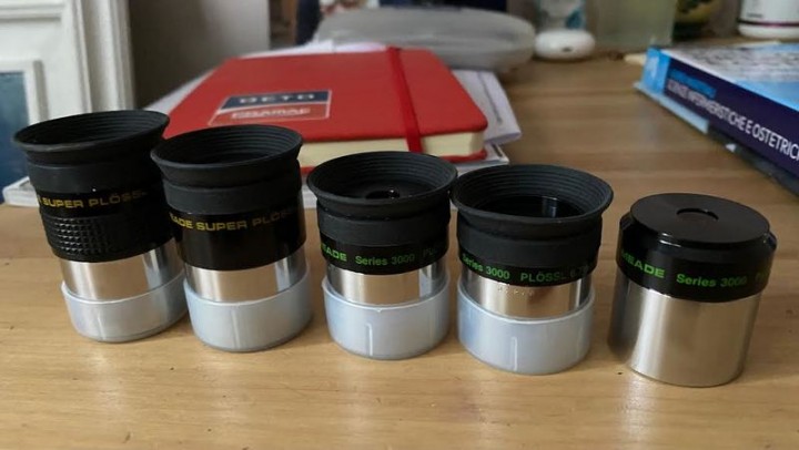 Plossl serie 4000 Japan 15mm e 12,4mm. Plossl serie 3000 Japan 9,5mm e 6,7mm. Del 9,5mm presente anche la versione smooth con scafo senza gommino. Provvisti tutti di tappo inferiore.