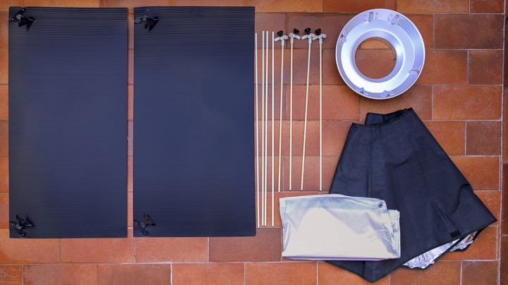 Causa inutilizzo, vendo Soft-Box ProLight 70x70cm - Completo di 2 ante paraluce in cartone rigido plastificato nero 40x70cm; adattatore in alluminio per flash da studio, o fari a luce fredda tipo led; 8 stecche in bachelite per il montaggio a trapezio sull'adattatore in alluminio: telo in stoffa nero con interno metallizzato. Completo di scatola d'imballaggio - Non adatto a lampade ad incandescenza ad alti watt (>500w). Ripiegabile. Consegna a mano per Roma città e dintorni. Spese di spedizione Corriere a carico dell'acquirente. Per pagamenti via PayPal la commissione (3,75 euro) a carico dell'acquirente