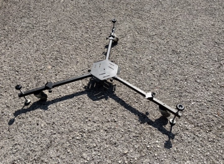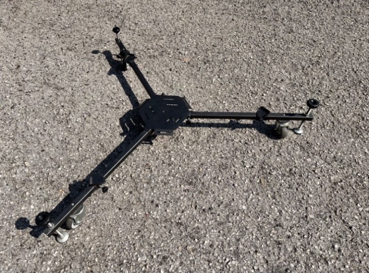 Robusto carrello in acciaio inox per trasporto telescopi, anche di grandi dimensioni con ruote e viti calanti. Smontabile in 4 pezzi.