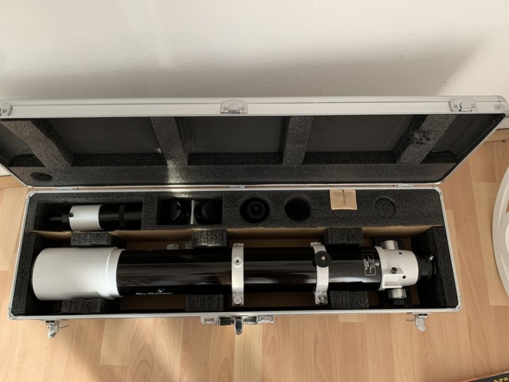 Tubo ottico rifrattore Sky-Watcher Evostar 100ED a doppietto apocromatico con lenti a bassa dispersione ED da 100mm di diametro, 900mm di lunghezza focale, f/9 e valigia rigida di alluminio. perfetto pari al nuovo offre immagini spettacolari identiche ai rifrattori apo piu' blasonati. Altre foto od info a richeista.