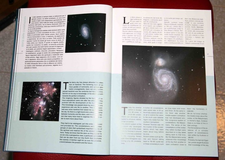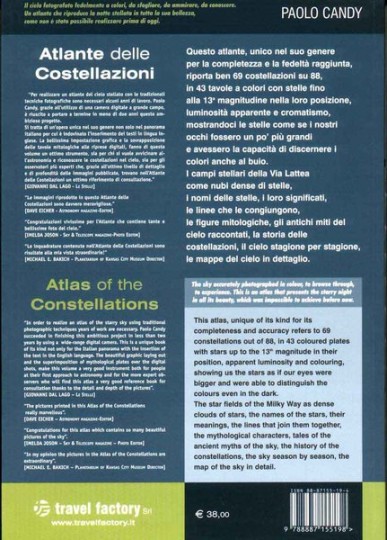 Ho appena ritrovato copie come nuove, 9 rimaste, quindi le vendo a 8€ a copia spedite! - ATLANTE DELLE COSTELLAZIONI - ATLAS OF THE CONSTELLATIONS (2004) Da sfogliare, da regalare! Prezzo copertina: 38€ Prefazione: Margherita Hack Questo atlante, unico nel suo genere per la completezza e la fedeltà raggiunta, riporta ben 69 costellazioni su 88, in 43 tavole a colori con stelle fino alla 13a magnitudine nella loro posizione, luminosità apparente e cromatismo, mostrandoci le stelle come se i nostri occhi fossero un po’ più grandi e avessero la capacità di discernere i colori anche al buio. I campi stellari della Via Lattea come nubi dense di stelle, i nomi delle stelle, i loro significati, le linee che le congiungono, le figure mitologiche, gli antichi miti del cielo raccontati, la storia delle costellazioni, il cielo stagione per stagione, le mappe del cielo in dettaglio. * Vendo a: 8€ compresa spedizione. **Atlante + Manuale di Astrofotografia vendo a : 14€ spediti