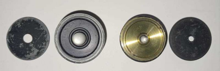 Il set è composto da n. 5 oculari (penso che le focali siano 25,18, 12.5, 10 e 5 circa), in stato d'uso vissuto, in particolare per quanto riguarda le vernici esterne, come si vede dalle foto, nonché uno spettroscopio da avvitare sopra gli oculari (l'elemento più lungo), un prisma probabilmente da disegno (anche questo da avvitare all'oculare al posto del “tappo” superiore), e due filtri direi uno solare (ovviamente da non usare) ed uno lunare (verde scuro). Sugli oculari o all'interno non compare alcuna scritta o sigla, di alcun genere.