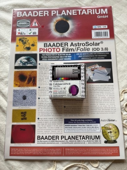 Vendo: Filtro Baader CaK gen 2 + Astrosolar nd3.8 A4 | Baader planetarium