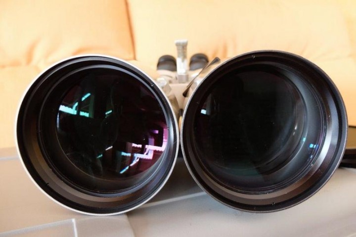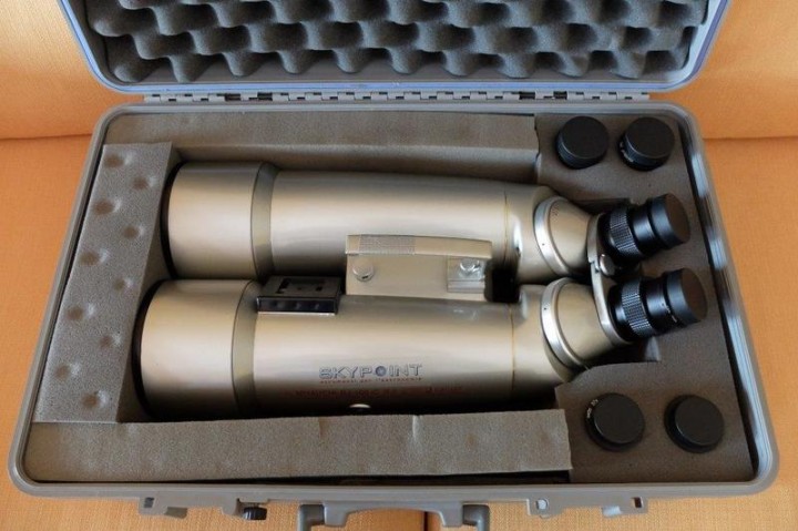 Se necessita disponibili (ed eventualmente vendibili singolarmente solo dopo aver venduto il binocolo), treppiede Manfrotto 475b , testa fluida 501 con due maniglie di diversa lunghezza, due piastre originali a sgancio rapido, custodia dedicata Manfrotto Mbag100 (adatta anche per rifrattori da 150 a corta focale), sacca porta-accessori originale da appendere fra le gambe. 350 euro non trattabili spedizione compresa.