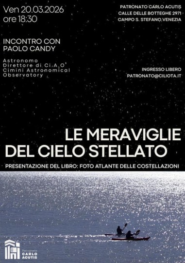 Nell'incontro di Venezia parlerò della mia esperienza di una vita a contatto con le stelle, e di fenomeni rari che ho visto e fotografato. Vi aspetto!