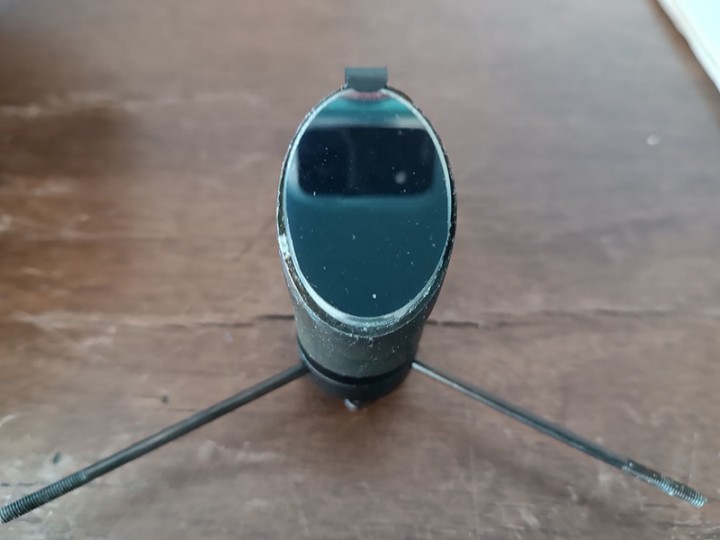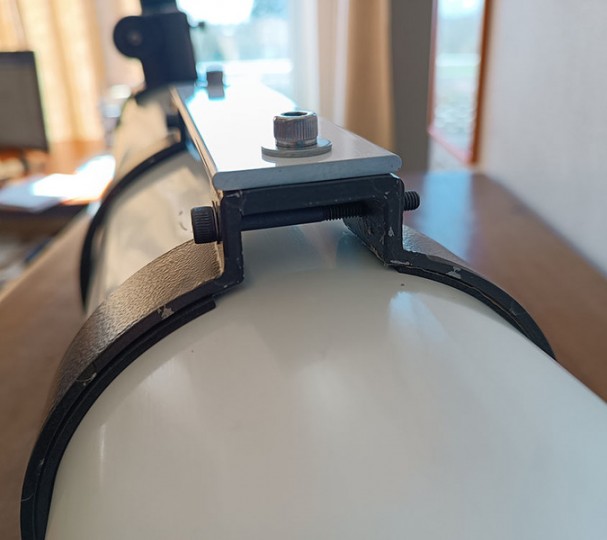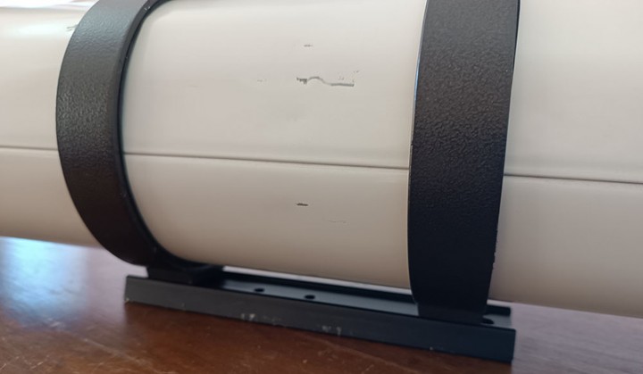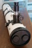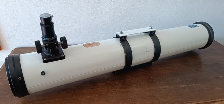 Il primario presenta alcuna zone con l'alluminatura danneggiata, questo non incide particolarmente sulla visione. Il tubo presenta alcune ammaccature nella parte centrale dovute ad uno scorretto utilizzo degli anelli in fase di fissaggio sulla montatura da parte del precedente proprietario. Ho modificato gli anelli in modo da evitare questo inconveniente e ho aggiunto una maniglia per l'impugnatura e una barra Vixen.