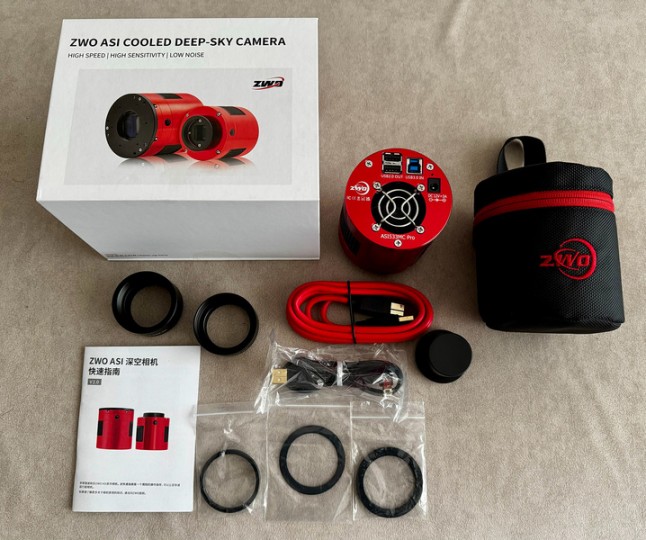 Ottima fotocamera ZWO ASI 533 MC Pro Color in perfette condizioni estetiche e di funzionamento, pari al nuovo e fornita con imballo e tutti gli accessori originali a corredo: Astuccio, Adattatore 1.25" a T2, Cavo USB 3.0 (2 metri), Cavo USB 2.0 (0.5 metri), Anello di estensione T2-M48 16.5 mm, Anello di estensione T2 21 mm, Adattatore M42-M48, Adattatore T2-1.25", spaziatori e tappo.