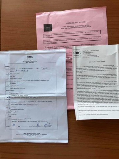 - Certificati SBIG relativi alla camera