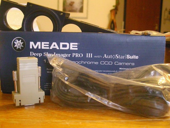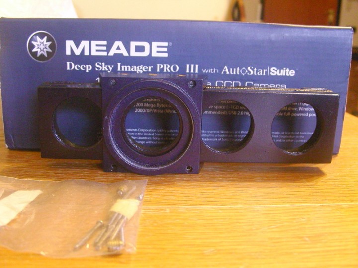 Vendo questa CCD della Meade modello III Mono, ottime condizioni e perfettamente funzionante, presenta due colonne parziali bianche (non bianche nella loro intera lunghezza) rimovibili tramite dark, completa di tutti gli accessori originali nella sua scatola, presente la sua slitta per 4 filtri (non compresi), con il suo raccordo che le permette di essere mossa e bloccata in posizione, ora però non è montata avendo montato al suo posto un raccordo diretto femmina T2 che permette di montarvi un "naso" da 31,8mm, comunque ripristinabile con slitta e portaslitta originali grazie alla viteria originale conservata in un sacchettino all'interno della scatola, tutti i cavi originali sono compresi incluso il CD con il software di controllo Autostar Envisage compatibile fino a Windows7 (oltre non so..). Cedo a euro 50 + s.s.