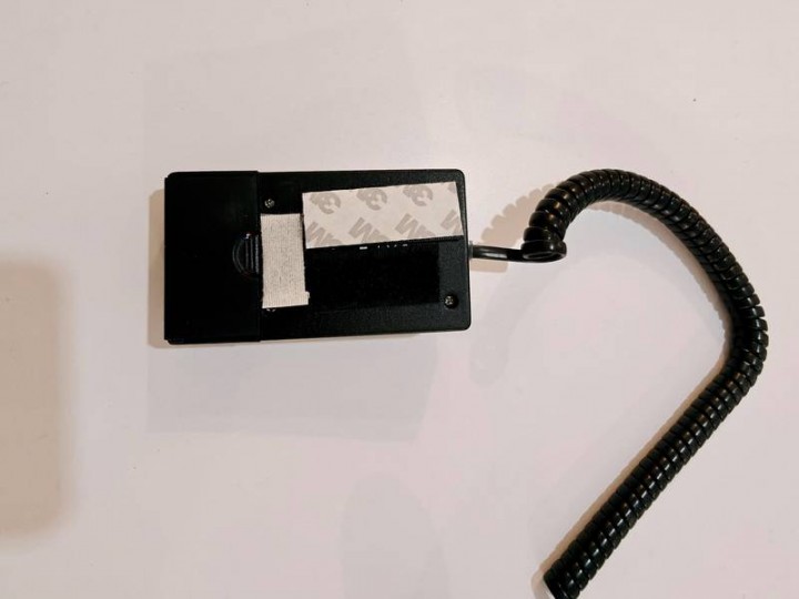 Dietro alla pulsantiera è attaccato del velcro adesivo (per attaccarlo al volo al cavalletto) che può essere rimosso.