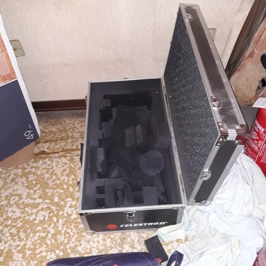 Baule "Vintage" Celestron. Adatto per C6 e C8 Dimensioni: 28,5 x 38,5 x 74. La struttura rigida è girca 1 cm e si deve calcolare la compressione del foam (da tutti i lati. Il mio c8 con cercatore di serie ci entrava ed era "immobile" al suo interno. Ultimi oggetti di un hobby che non ha avuto seguito. Grazie. Carlo . Per favore non aprire trattatve private solo per chiedere info. Grazie.