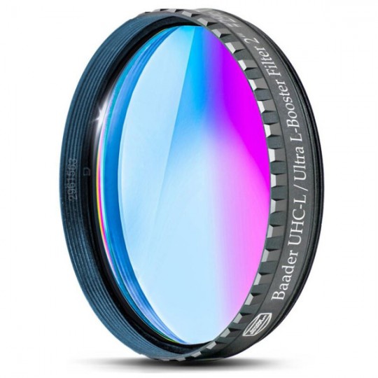 Il filtro Baader UHC-L è il classico “filtro anti-inquinamento luminoso tuttofare”, ma ora blocca anche le principali emissioni dei LED nella porzione blu dello spettro. La curva di trasmissione corrisponde a quella di un filtro a doppia banda larga, ma senza alterare i colori delle stelle. Le due bande di trasmissione lasciano passare tutta la luce emessa dalle note nebulose gassose (le linee H-alfa e H-beta dell'idrogeno fluorescente e la linea OIII dell'ossigeno), mentre viene bloccata in larga misura sia la luce diffusa più fastidiosa a livello atmosferico proveniente dalle lampade a LED e dai fari delle auto di colore blu intenso, sia la luce diffusa dei classici lampioni stradali, nonché la naturale luminescenza notturna (airglow/skyglow) dell'atmosfera.