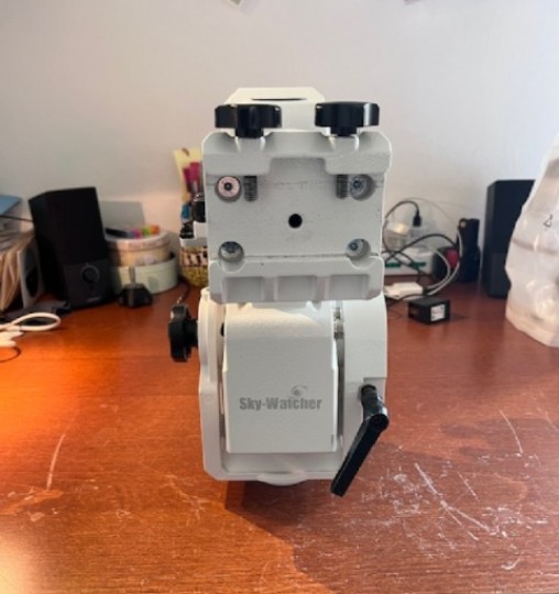 Perfettamente funzionante, presenta qualche lieve segno dettato dall'uso ma è precisa come un orologio, sia nell'inseguimento che nel puntamento. Sempre tenuta con cura. Vendo per passaggio a montatura superiore. Completa di pulsantiera, doppia testa, cannocchiale polare (non presente in foto), due contrappesi da 3.5 kg l'uno, cavi, borsa Artesky per il trasporto. Non è presente il treppiedi. Di gran lunga preferita la consegna a mano a Mestre, in caso di spedizione +30 euro (2 pacchi di cui 1 per i contrappesi).