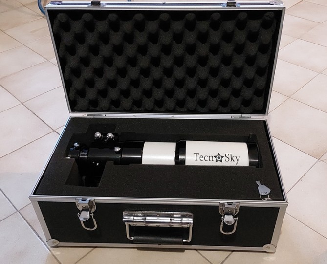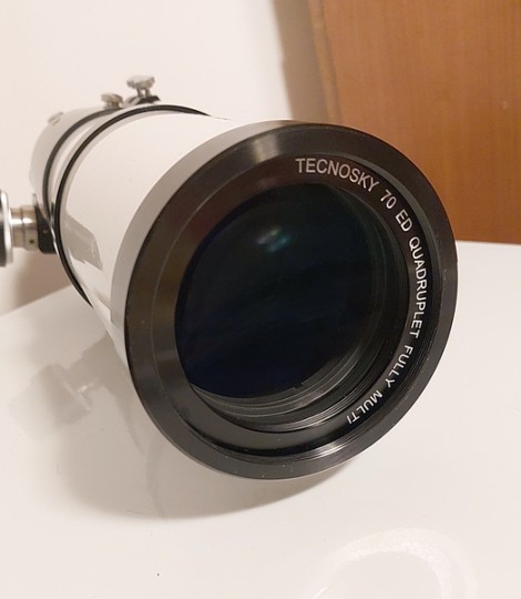 Vendo telescopio apocromatico quadruplet ED lantanio Tecnosky d:70 f:474 con spianatore di campo a 4 elementi integrato, focheggiatore con riduzione micrometrica 1:10. Lo spianatore di campo assicura un campo perfettamente corretto fino a 32mm, ideale per sensori APS-C e camere dedicate. Aggiungo una diagonale GSO e cercatore hot red + attacco a coda di rondine + oculare wide Orbinar 10mm 70° + oculare ortoscopico 5mm. Il tutto in ottime condizioni fornito di robusta valigetta originale. Spese spedizione incluse