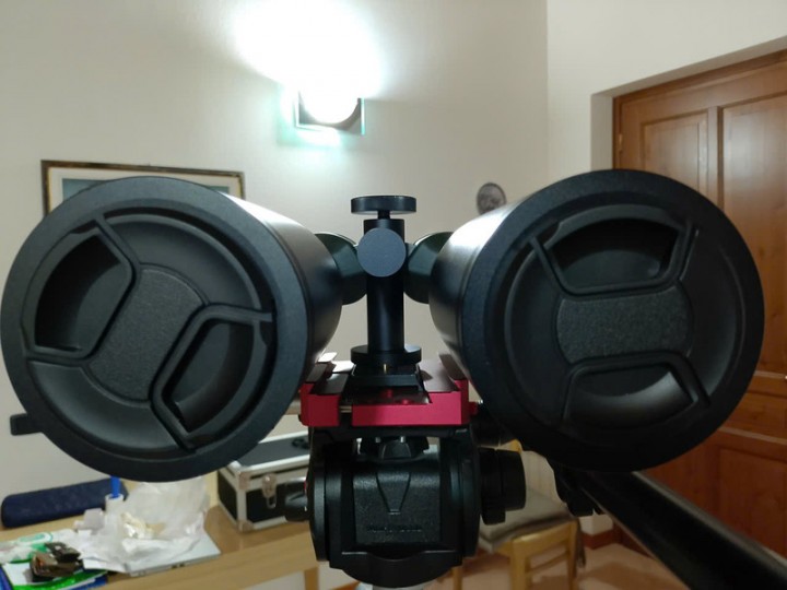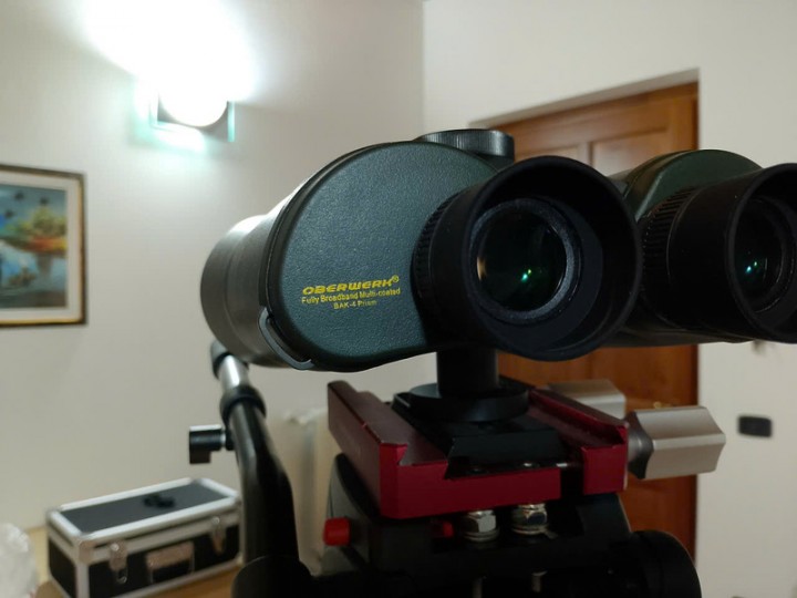 Vendo per definitiva cessazione attivita' osservativa, binocolo Oberwerk 20x65 ED, lenti in vetro FK-61, in condizioni pari al nuovo, assolutamente perfetto, con propria valigia in metallo con interno imbottito e sagomato, cavalletto Manfrotto 055XPROB, testa fluida Manfrotto 503HDV con montato sopra morsetto Vixen/Losmandy della Primalucelab, per eventuale attacco piastre di supporto dei telescopi.