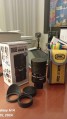 E’ completo della sua scatola originale e di tutti gli accessori previsti (borsa da trasporto stile fondina, 3 tappi di protezione, paraluce in gomma, anello adattatore foto/video M43).