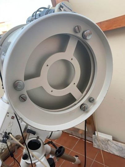 Il newton dal punto di vista ottico e meccanico è perfetto in quanto è stato sempre tenuto in osservatorio e mantenuto con la massima cura e pulizia. Esteticamente è perfetto, è solo leggermente scolorito nella parte posteriore sopra la scritta skywatcher per via del fatto che è stato lavato sempre con alcool che ne ha intaccato leggermente il colore nero.