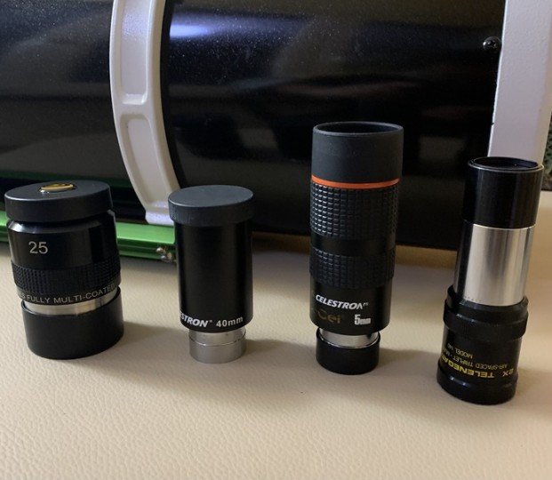 Celestron 40mm, Celestron 5mm, Barlow Meade 2x telenegative amplifier utilizzati pochissimo.