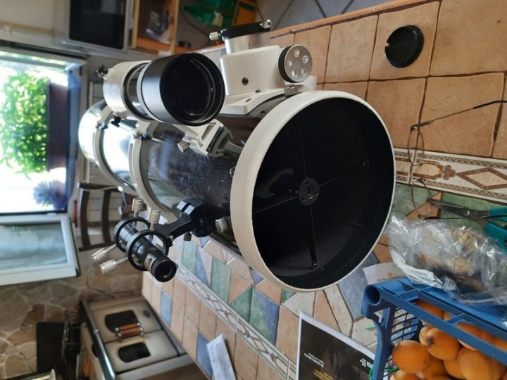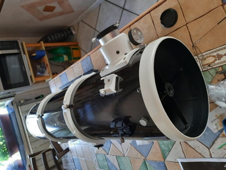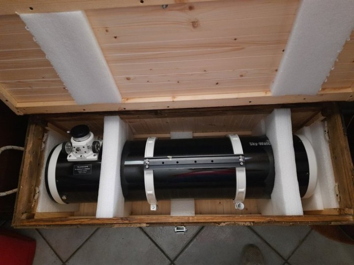 solo il tubo ottico, in ottimo stato, qualche piccolo segno dovuto all'uso, ma in perfette condizioni ottiche e meccaniche, insieme al tubo, anche il cercatore originale e il portalaser con relativo supporto, il riduttore da 2 pollici a 31,8, il tappo anteriore è provvisto del filtro solare astrosolar il tutto contenuto in un'ottima cassa in legno dotata di ruote e maniglie (autocostruita)