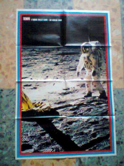 Manifesto pieghevole di cm 48x76... allegato alla rivista TEMPO del 1969 sulla conquista della Luna, con la celebre immagine di Neil Armstrong e la bandiera americana... ottimo stato... richiesti 10 euro (visto a 20 euro sul web)