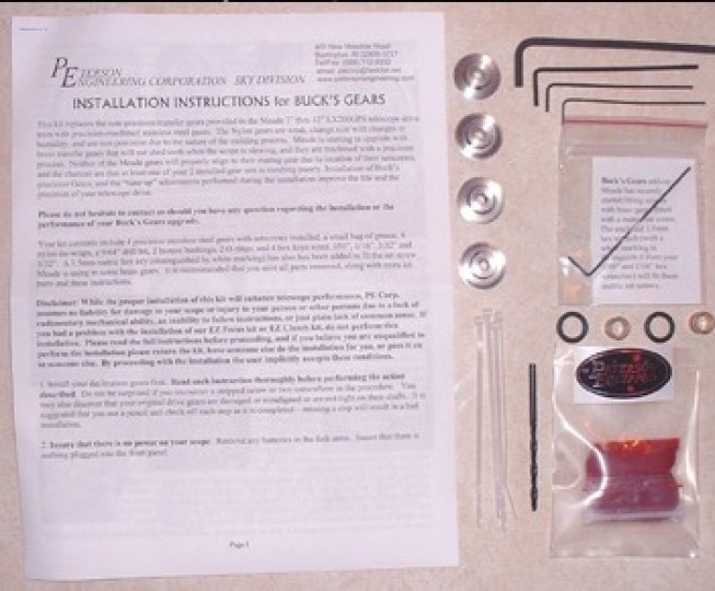 Sostituisce gli ingranaggi in plastica con ingranaggi di precisone. Vendo ingranaggi Peterson e Clutchs Kits adatti per telescopi Meade 8", 10" and 12", LX200 ACF, LX200R ed anche per i più recenti 7", 8", 10" and 12" Meade e LX200GPS Nuovo ancora nell'imballo originale. Nuovo, mai usato ed in imballo originale. Spese spedizione a parte.