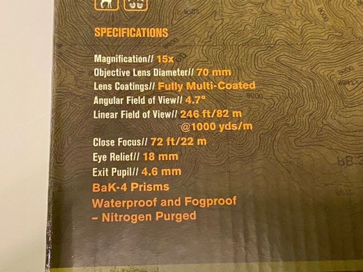 15 ingrandimenti, 70mm di diametro delle ottiche