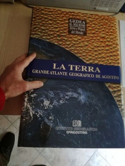 GIGANTESCO ATLANTE DELLA TERRA - DE AGOSTINI 2000... uno dei + grossi libri mai avuti e credo il + pesante in assoluto (almeno 7 kg.)... veramente un piacere sfogliare le paginone di questo "dinosauro", con le cartine fisiche del mondo (e non solo)... presenti anche delle appendici di geografia astronomica, tra cui 2 belle paginone dedicate alla Luna... ottimo stato... richiesti 40 euro... preferibile una consegna a mano, ma disponibile nel caso a spedire