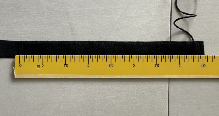 Misura precisa fascette: 40cm solo per la parte con circuito elettrico, a cui si aggiunge l'abbondanza della parte elastica con velcro con chiusura.